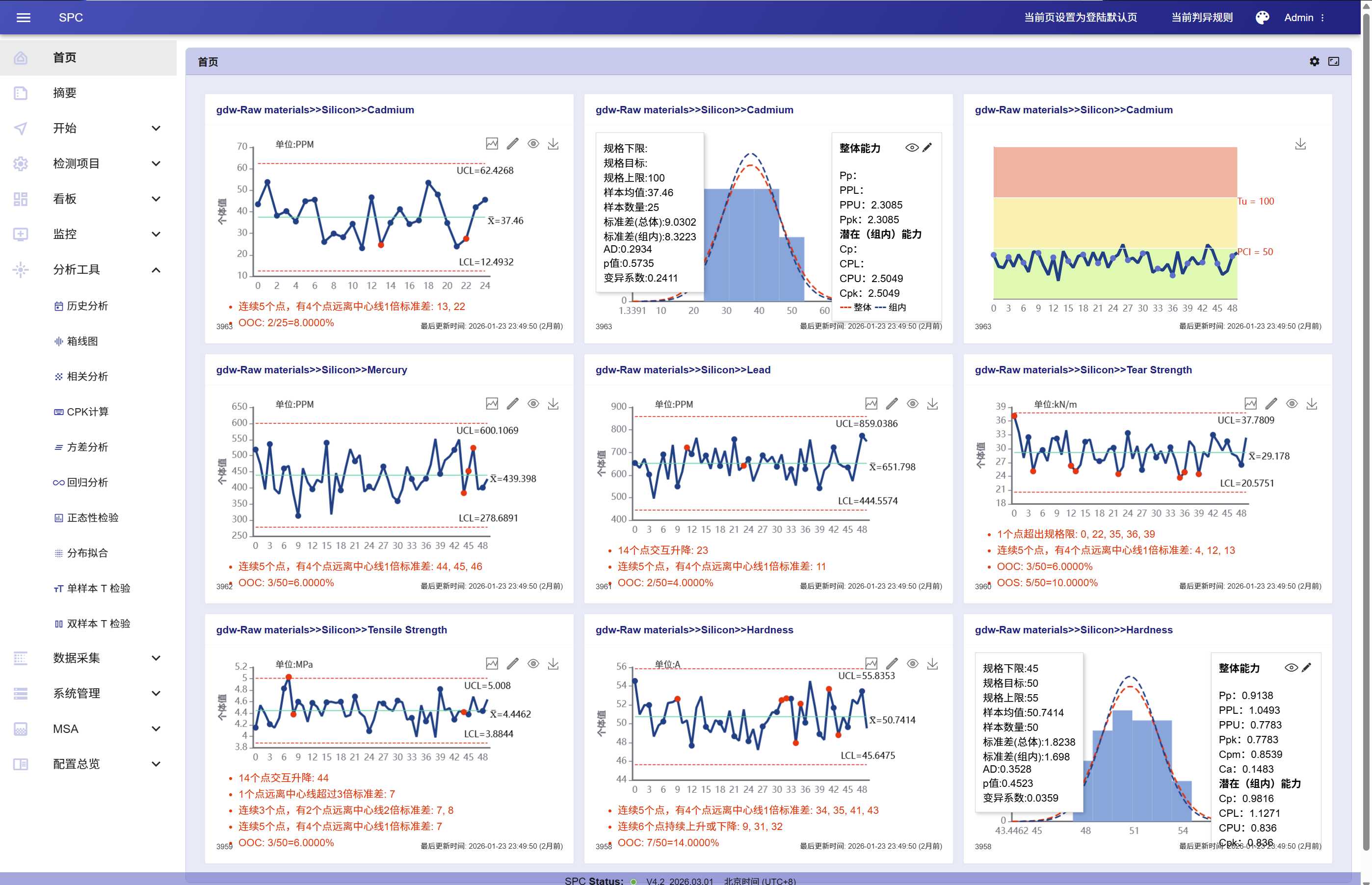 ● 核心特性:数据自动刷新控制图,支持11 种判异规则分组管理,CPK/PPK 过程能力实时监控,异常秒级预警